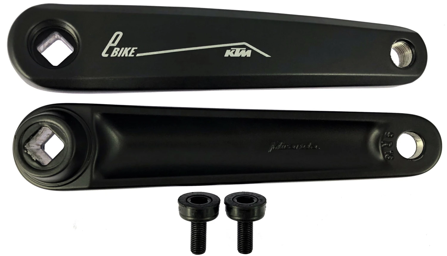 Die 170mm langen Miranda Delta Kurbel im KTM Design sind passend für alle E-Bikes mit Panasonic Antrieb und 4-Kant Aufnahme.