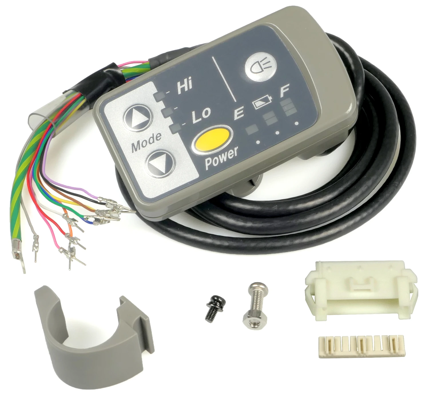 Original Panasonic LED Display für 26 V Premium E-Bikes. Der Controller verfügt über eine LED-Leiste zur Anzeige des Batterieladezustandes und eine Hintergrundbeleuchtung. Es bietet 3 Unterstützungsmodi und einen Schalter für die Lichtanlage. Kompatibel ist es zu Elektrofahrrädern mit Panasonic Mittelmotor und dem Premium 26 V System. Verbaut wurde dies unter anderem an Flyer E-Bikes. Der mitgelieferte Anschluss des LED Displays verfügt über einen 11-poligen Stecker bzw. Buchse, welche in einer Reihe nebeneinander angeordnet sind.