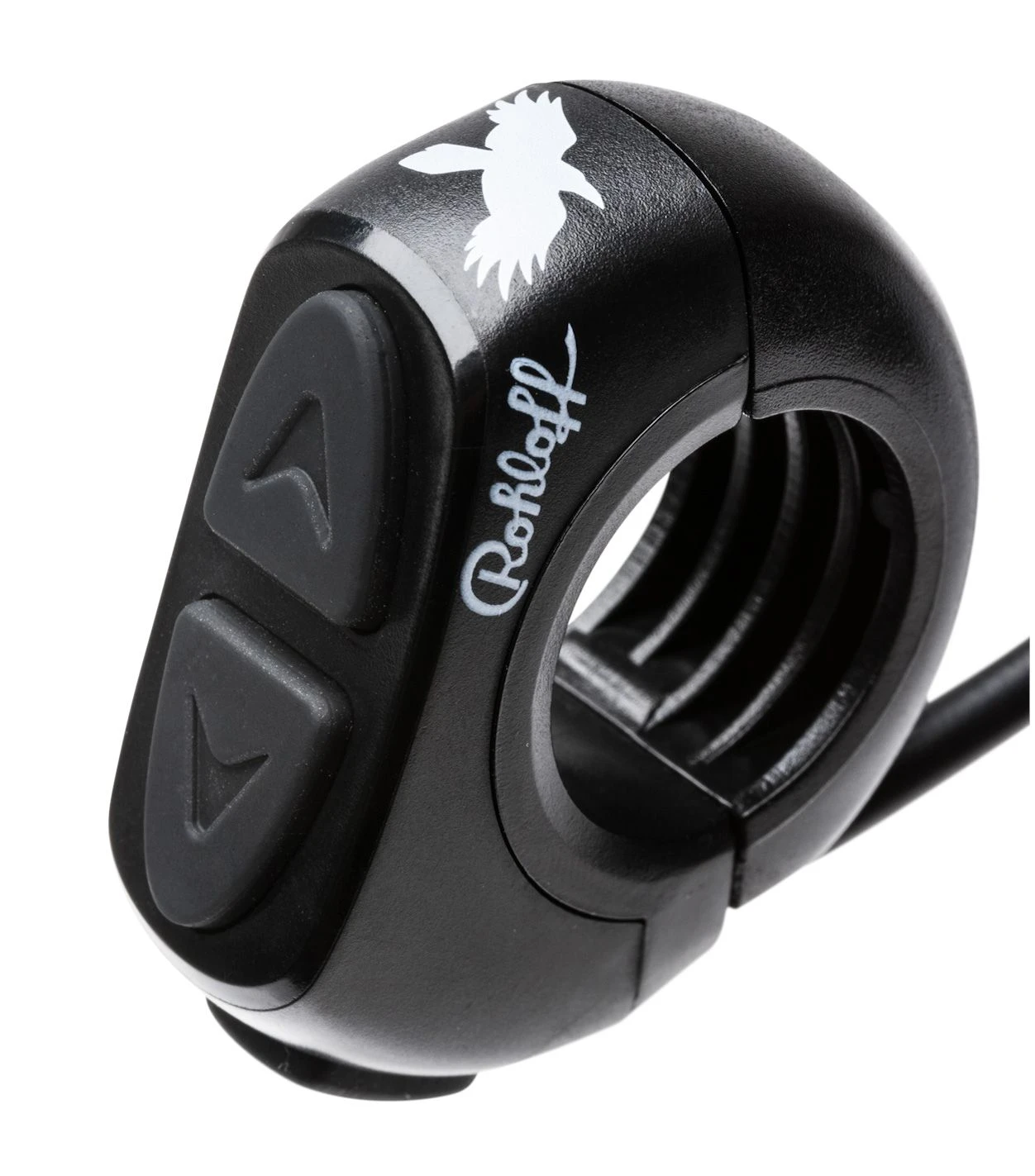 Mit dem Rohloff E-14 Lenkerschalter betätigst Du per Tastendruck die Schalteinheit. Kompatibel zum Lenkerdurchmesser 22 bis 22,3 mm empfiehlt sich die Montage rechts zwischen Griff und Bremshebel um eine ergonomisch günstige Position für den Daumen bekommen. Die Befestigung erfolgt stabil durch eine Klemmschelle aus Aluminum. Über ein Kabel mit Higo Stecker erfolgt die Verbindung zum DC/DC-CAN Konverter.